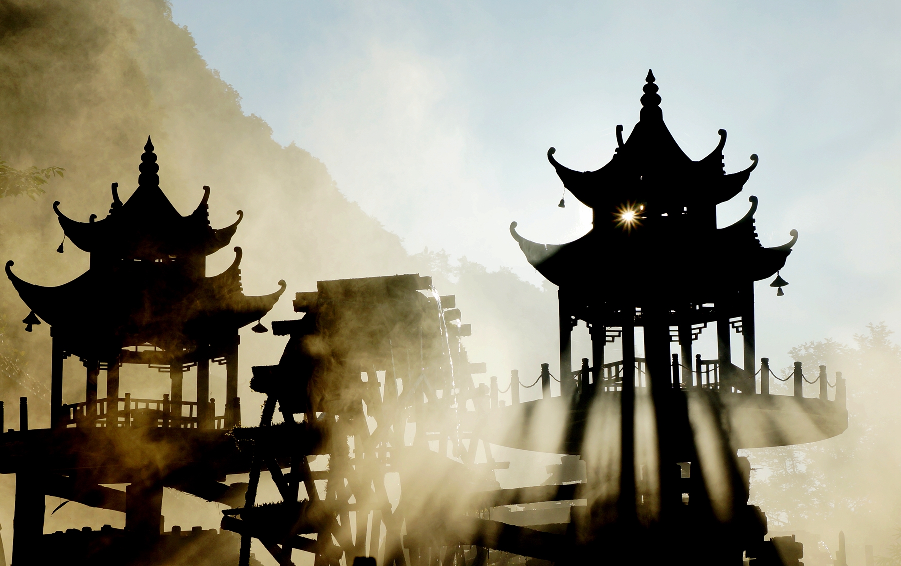 水車悠悠的翠谷,土家文化的寶庫。數(shù)十架大大小小、各式各樣的水車,星羅棋布地散落在清澈的溪澗里,在悠悠潺潺的溪流中吱吱啞啞地吟唱著古老的歌謠。使游人在驚嘆的同時仿佛進入一個古老的世界,因此喚醒回歸自然之幽情。