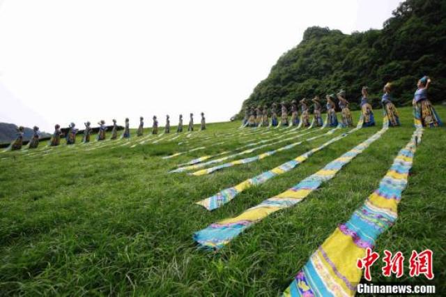 5月3日,湖南張家界武陵源黃龍洞風(fēng)景區(qū)的青年員工身著盛裝,上演了一場(chǎng)精彩的苗族頭帕秀,喜慶五四青年節(jié)的到來(lái)。